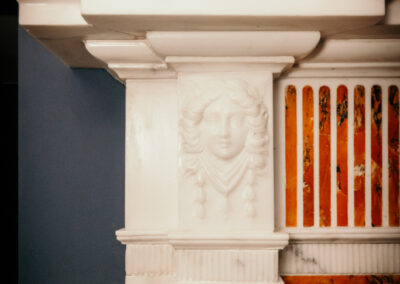 English antique George III Statuary Marble fireplace surround with a Siena Marble inlay. Late 18th Century Adam style
